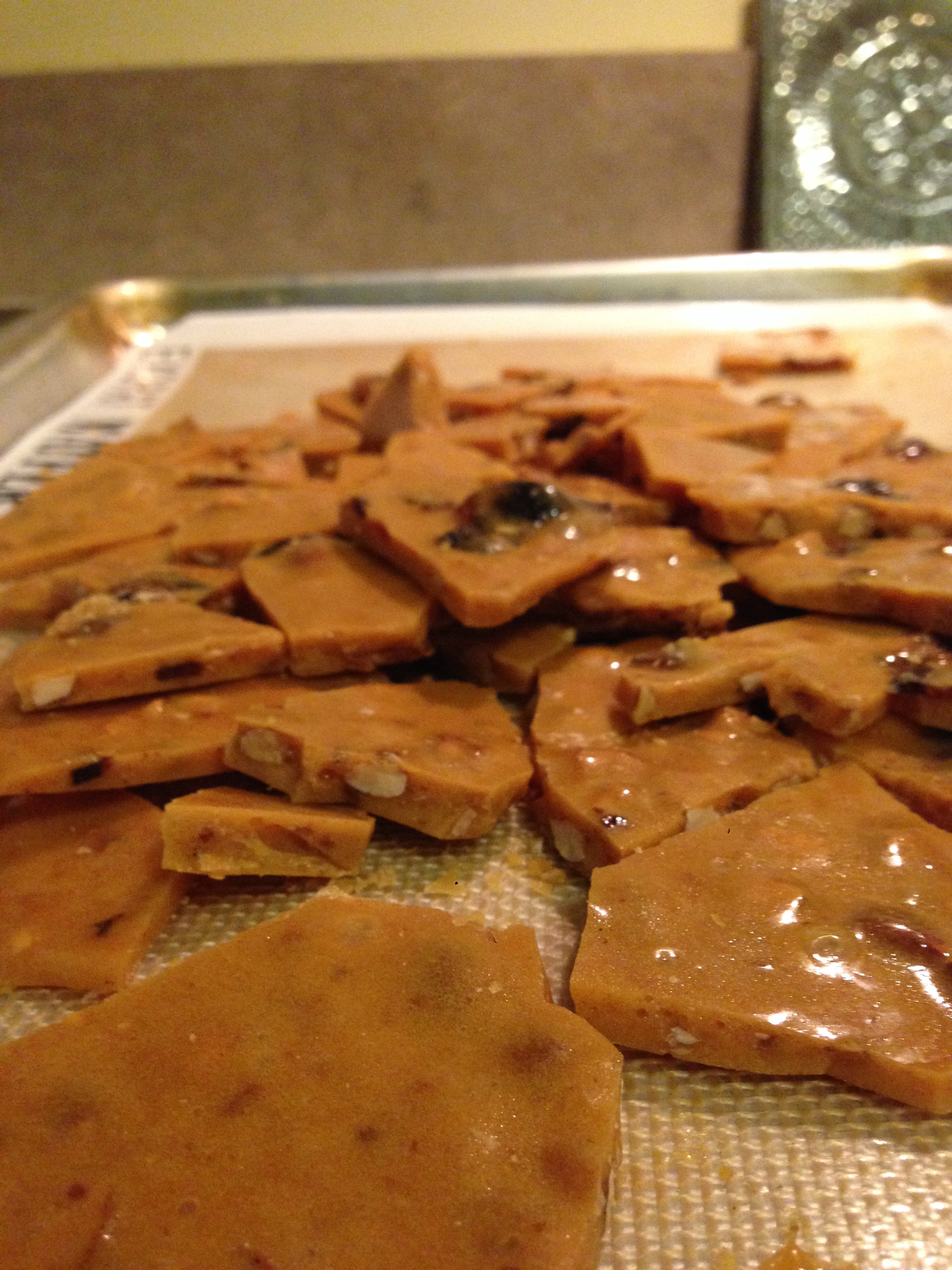 Like I said above, I won’t get the thick cut bacon next time. It took longer to cook and the pieces were a bit chewy in the brittle. It was still delicious but I think having it be crunchy will make it even better.